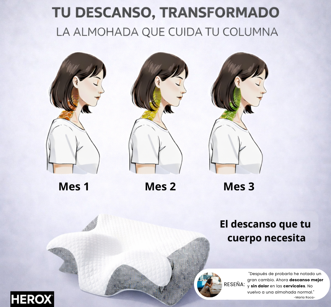 Porque mantiene la curvatura natural de la columna cervical, reduce tensiones y ayuda a prevenir dolores de cuello y hombros.